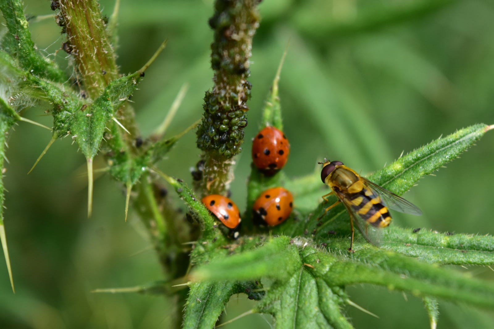 Last week, I noticed a patch of thistles near my flat was covered in ladybirds—literally dozens of them. When I returned a day or two later to examine it more closely, I realised that there were so many of them because the thistles were swarming with tiny, sap-sucking aphids—of which ladybirds are one of the principal predators.